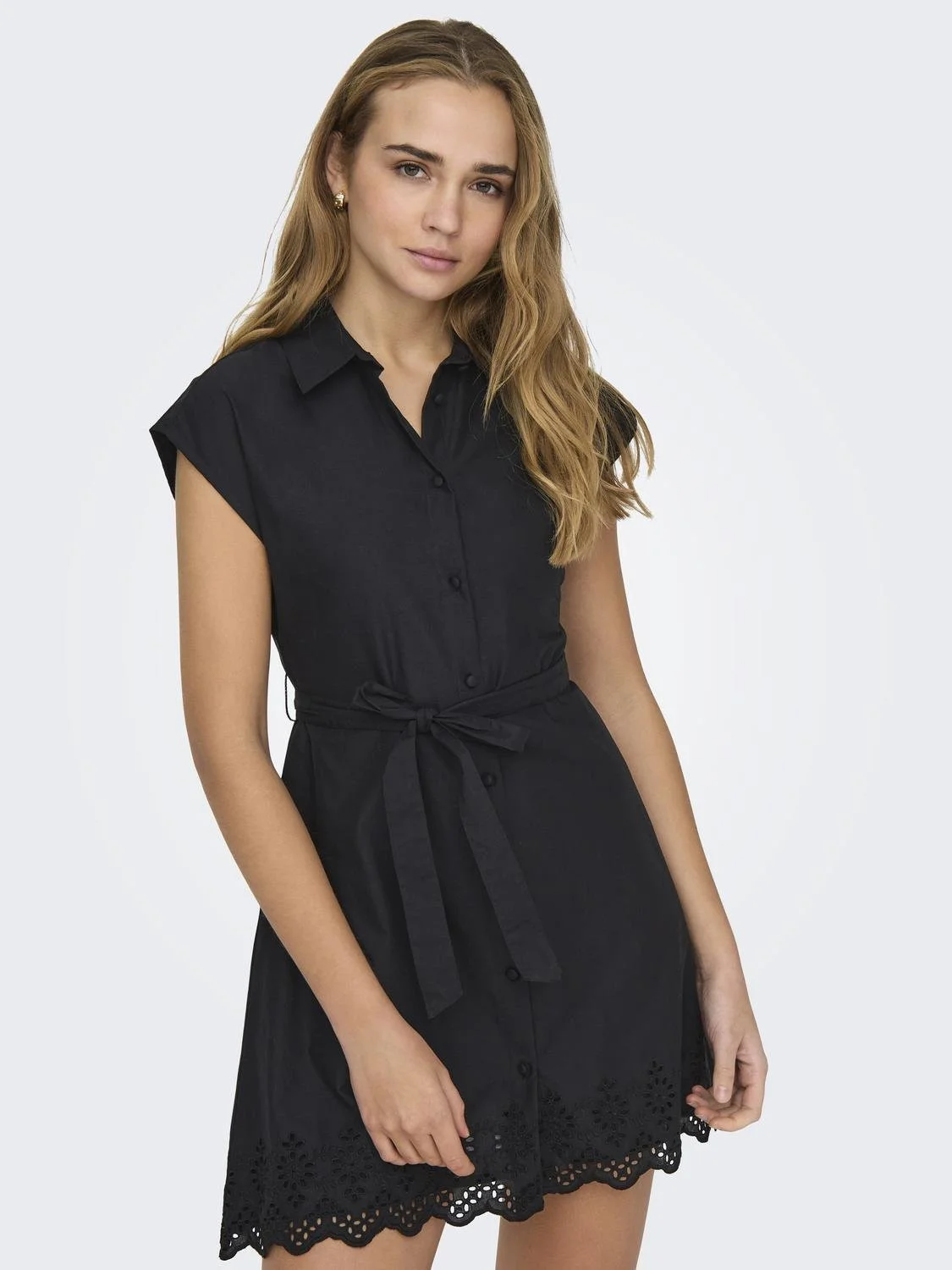 დამატებითი დეტალები: ქამარი წელზე, ინგლისური ბროდერის დეტალი, ტალღოვანი კიდეები