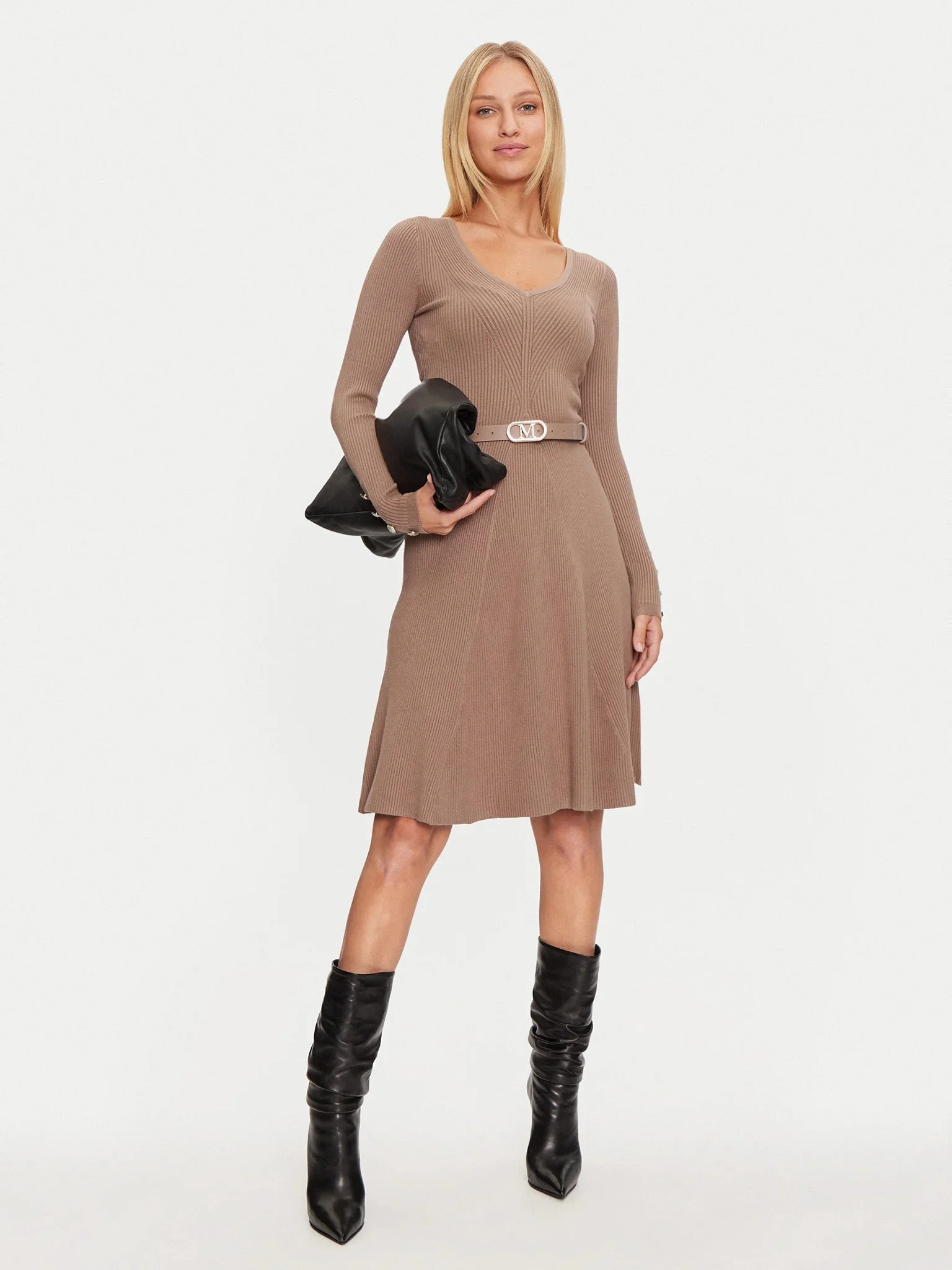 MARCIANO BY GUESS - LUNA LS RIBBED V NECK DRESS SW