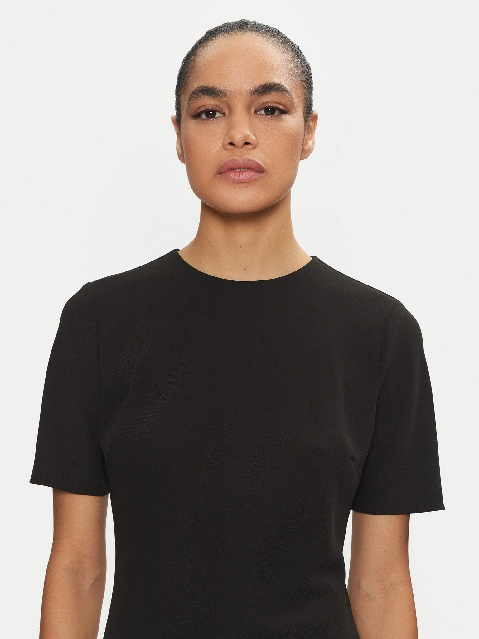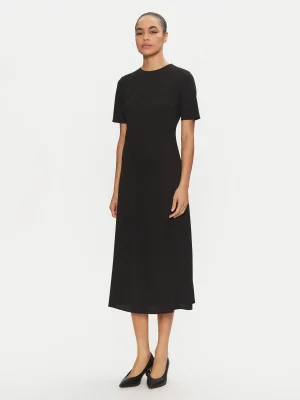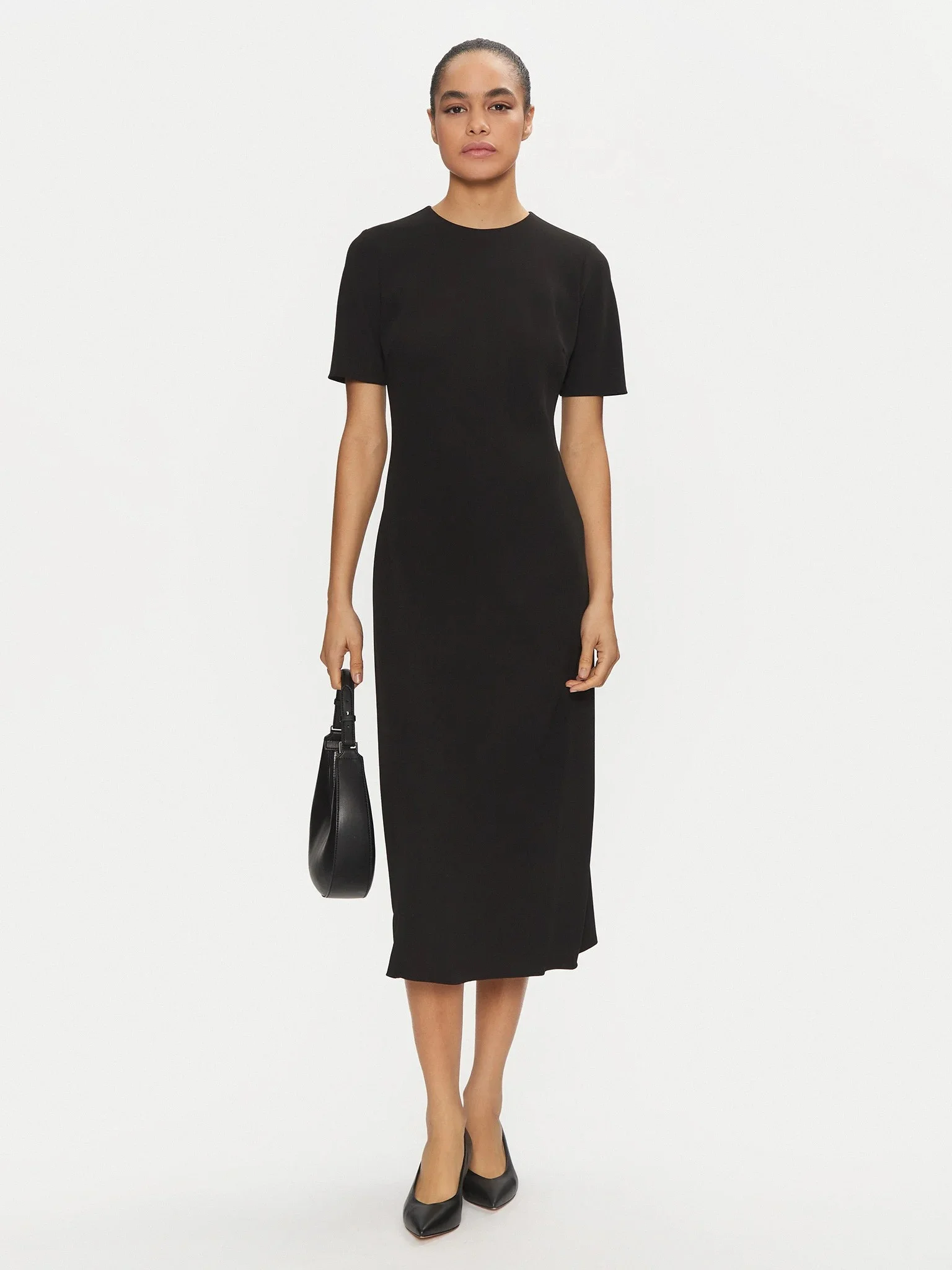 CALVIN KLEIN - HEAVY CREPE F&F HS MIDI DRESS