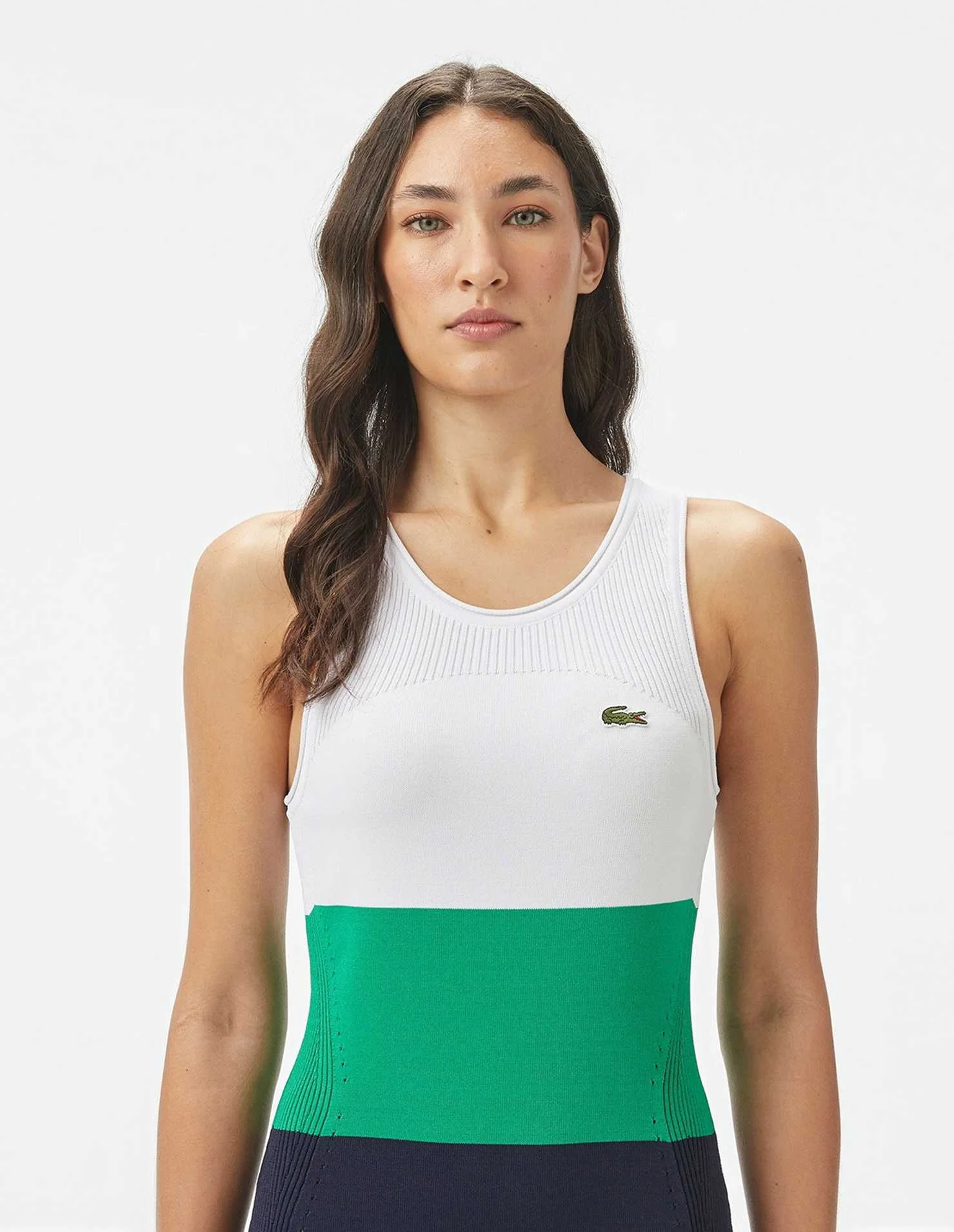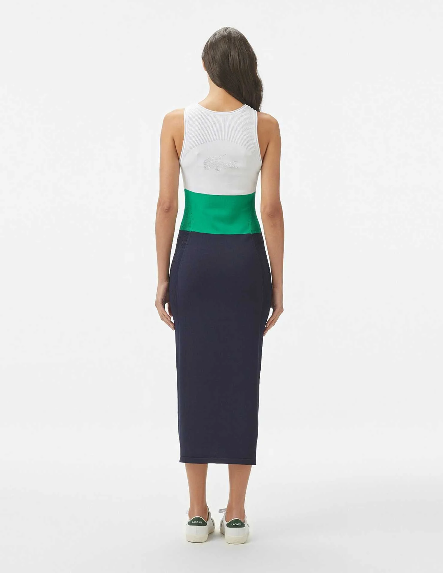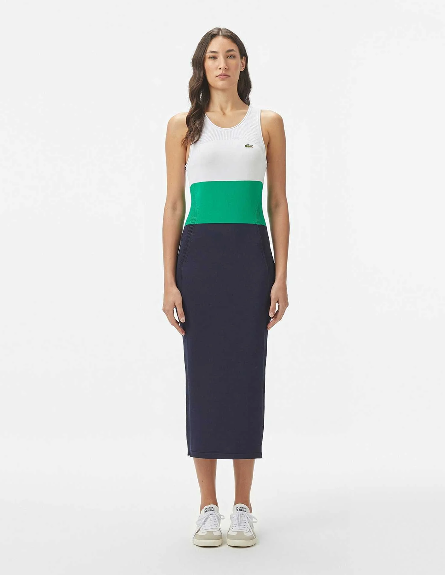 LACOSTE - Women's Slim Fit Sleeveless Crew Neck Color Block Dress