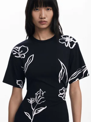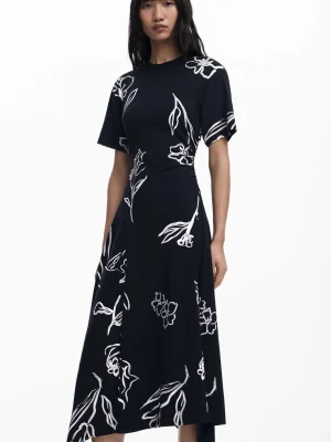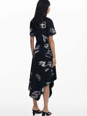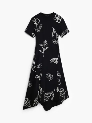 DESIGUAL - Asymmetric dress with floral strokes