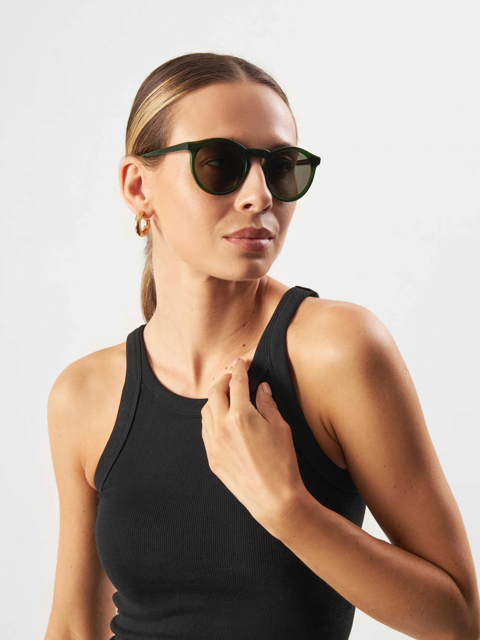 Fontana Green სათვალე გამოირჩევა მუქი მწვანე ჩარჩოთი, რომელიც ჰარმონიულად ერწყმის ნაცრისფრად დაბურულ ლინზებს. მისი მრგვალი დიზაინი ერთდროულად თანამედროვე და კლასიკურია, რაც ქმნის სუფთა და დახვეწილ იერს, რომელიც ნებისმიერ შემთხვევას იდეალურად მოერგება.