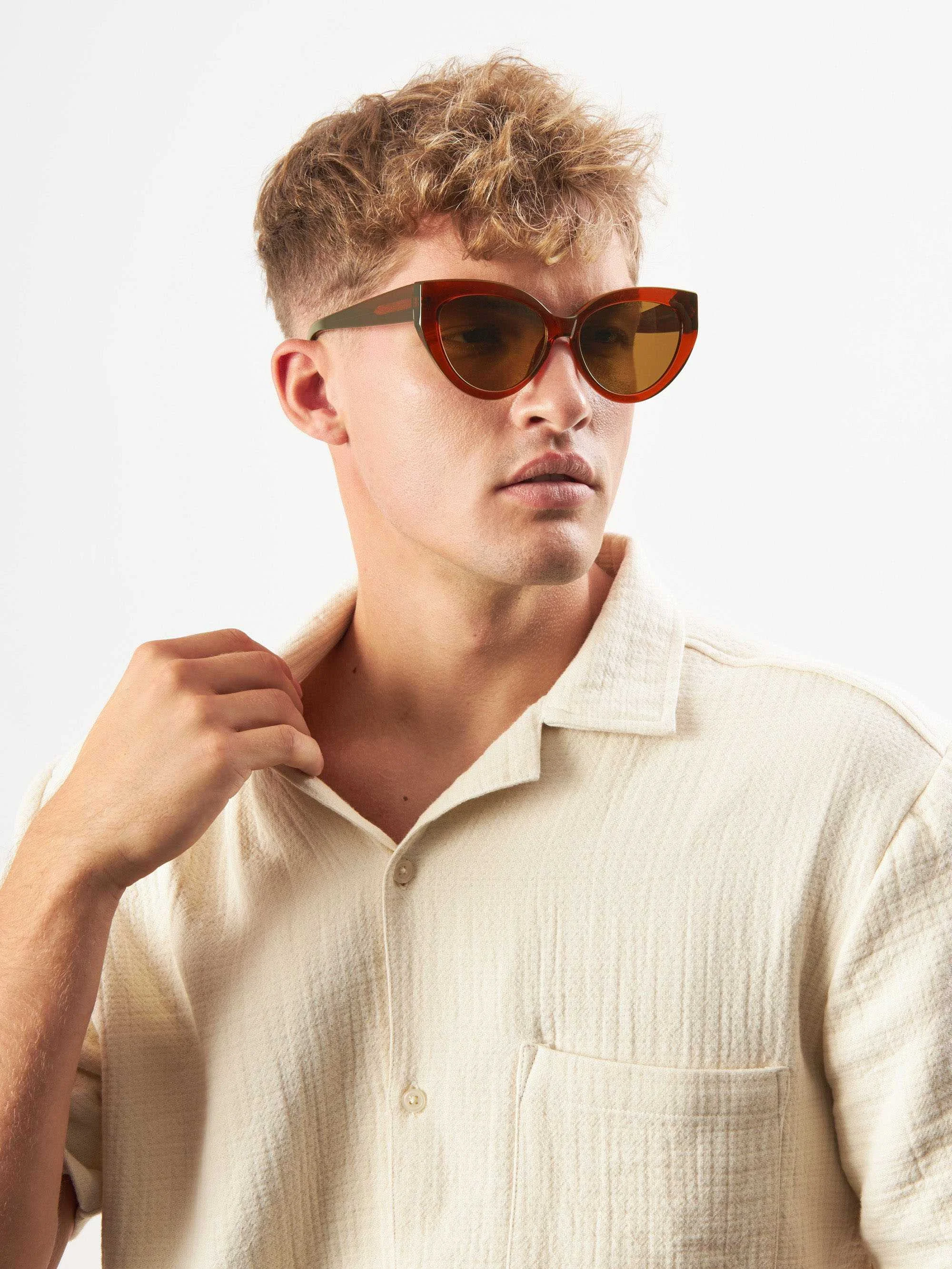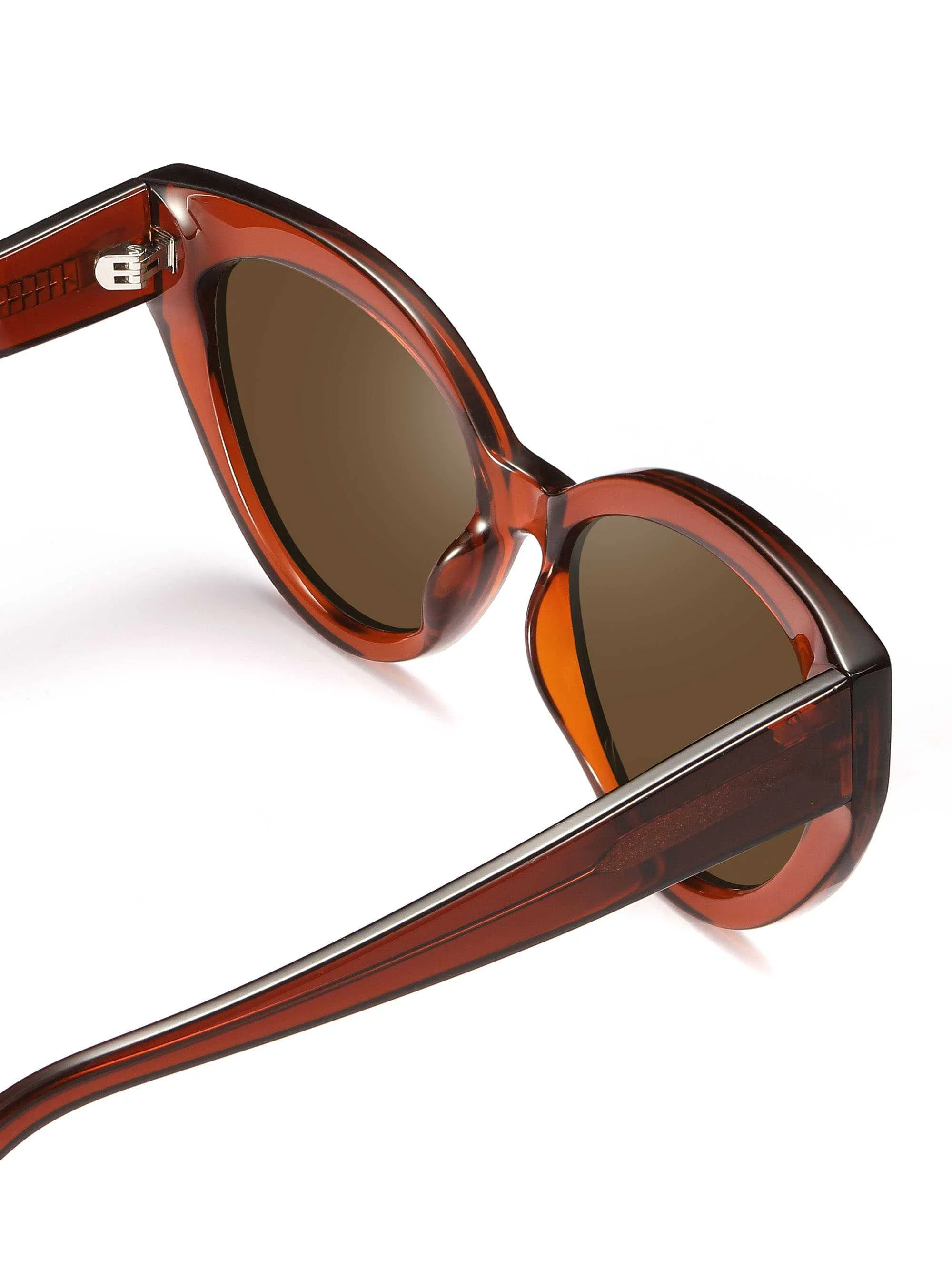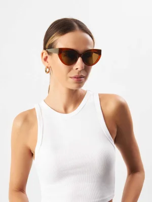 Rizzo Brown სათვალე გამოირჩევა თბილი, გამჭვირვალე ყავისფერი ჩარჩოთი, რომელიც იდეალურად ერწყმის მუქ ყავისფერ ლინზებს. ჩარჩოს თვალშისაცემი cat-eye ფორმა ასხივებს ვინტაჟურ, თუმცა დახვეწილ ხიბლს და იდეალურია მათთვის, ვისაც სურს საკუთარ იერს რეტრო ელფერი შემატოს.