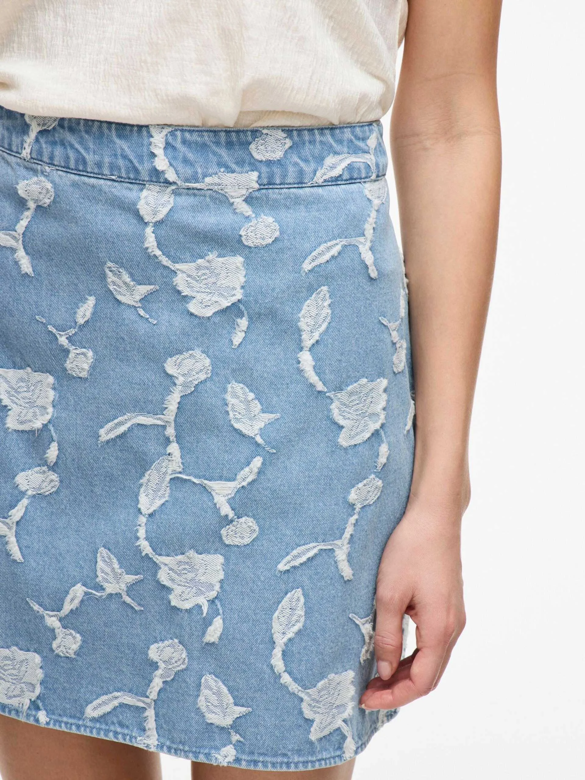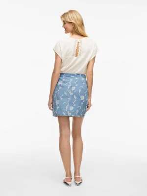 VILA - VIIANAIS HW JACQUARD SHORT DENIM SKIRT