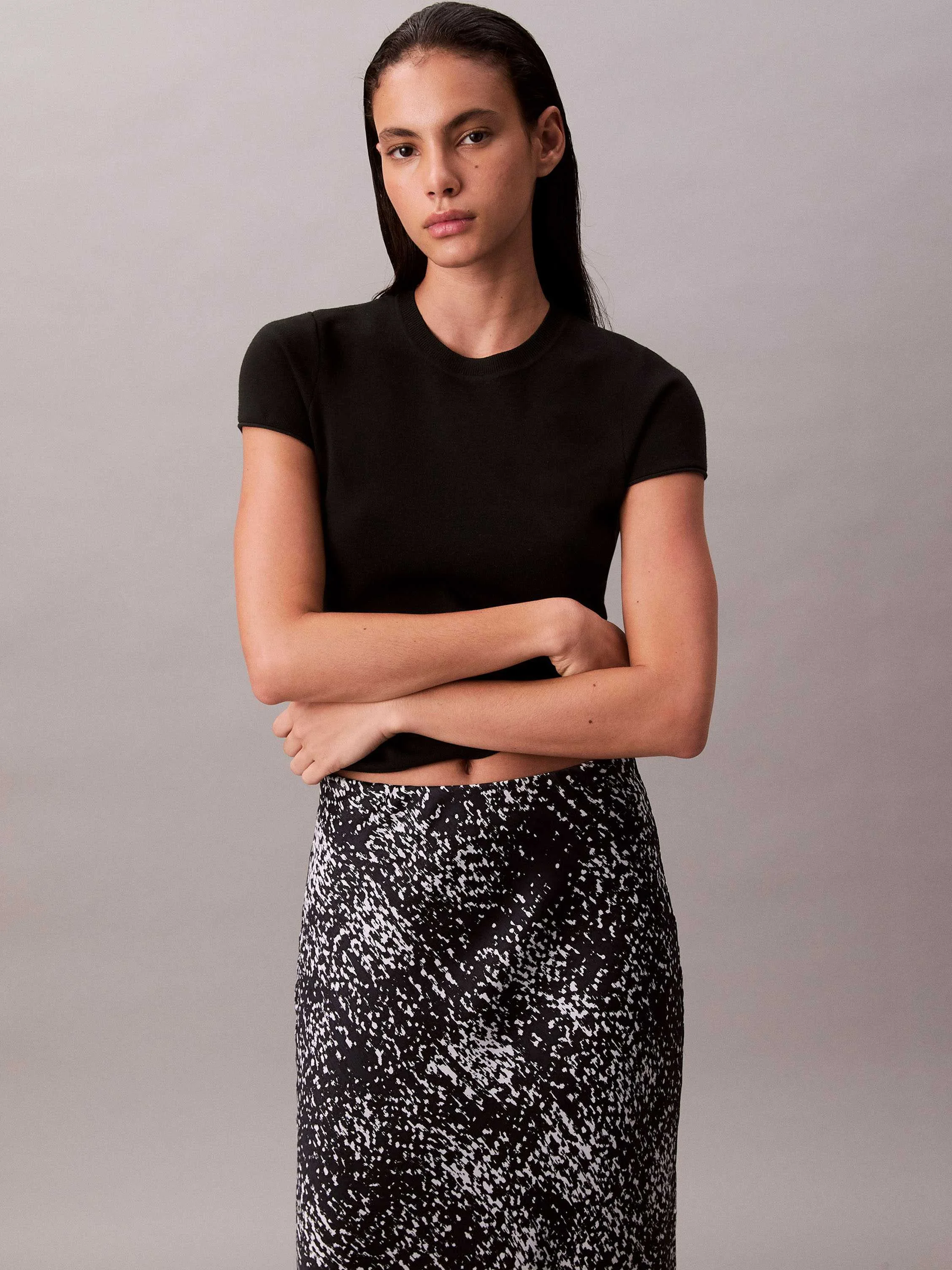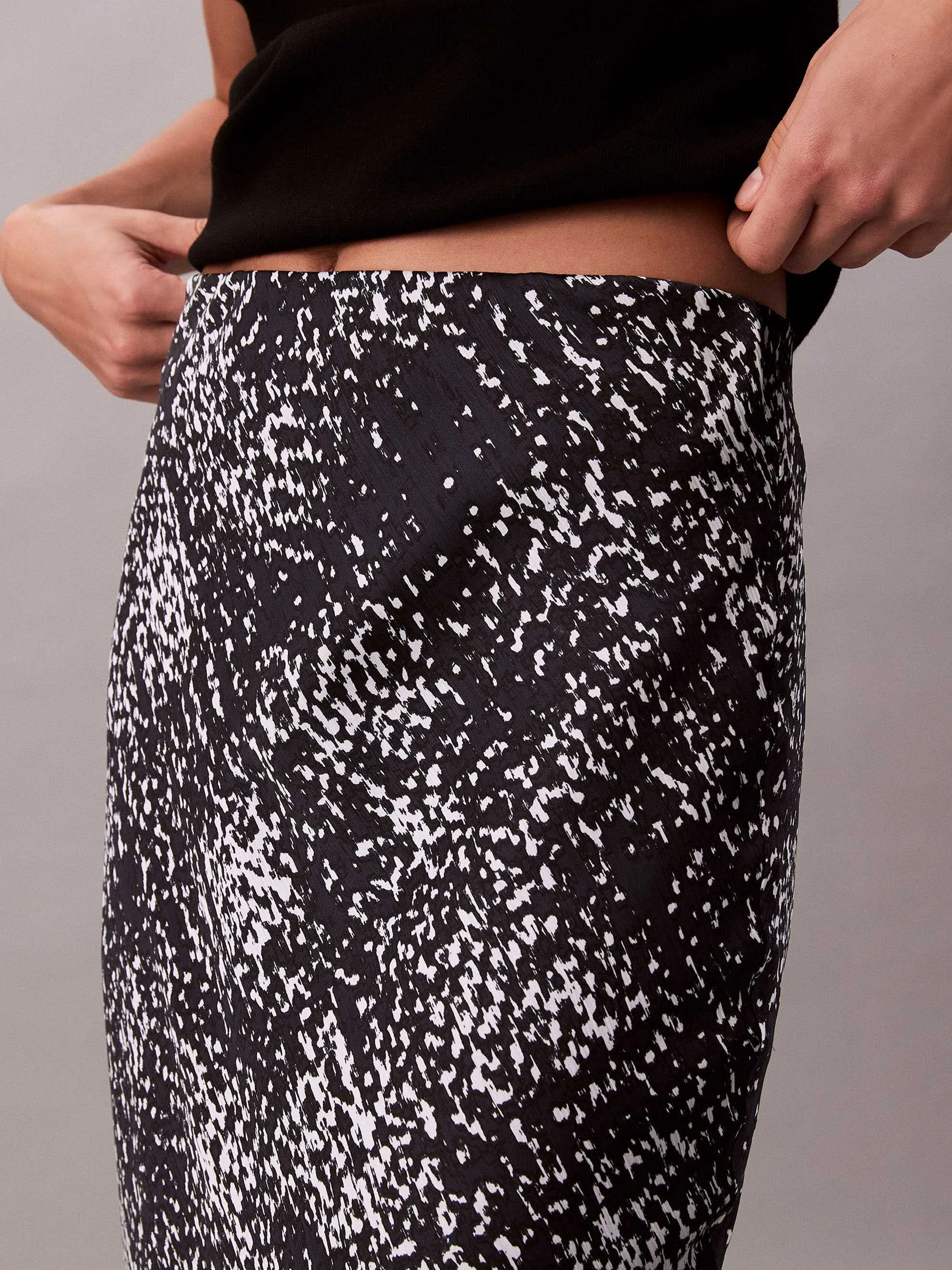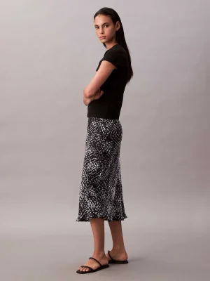 CALVIN KLEIN - Textured Satin Print Midi Skirt
