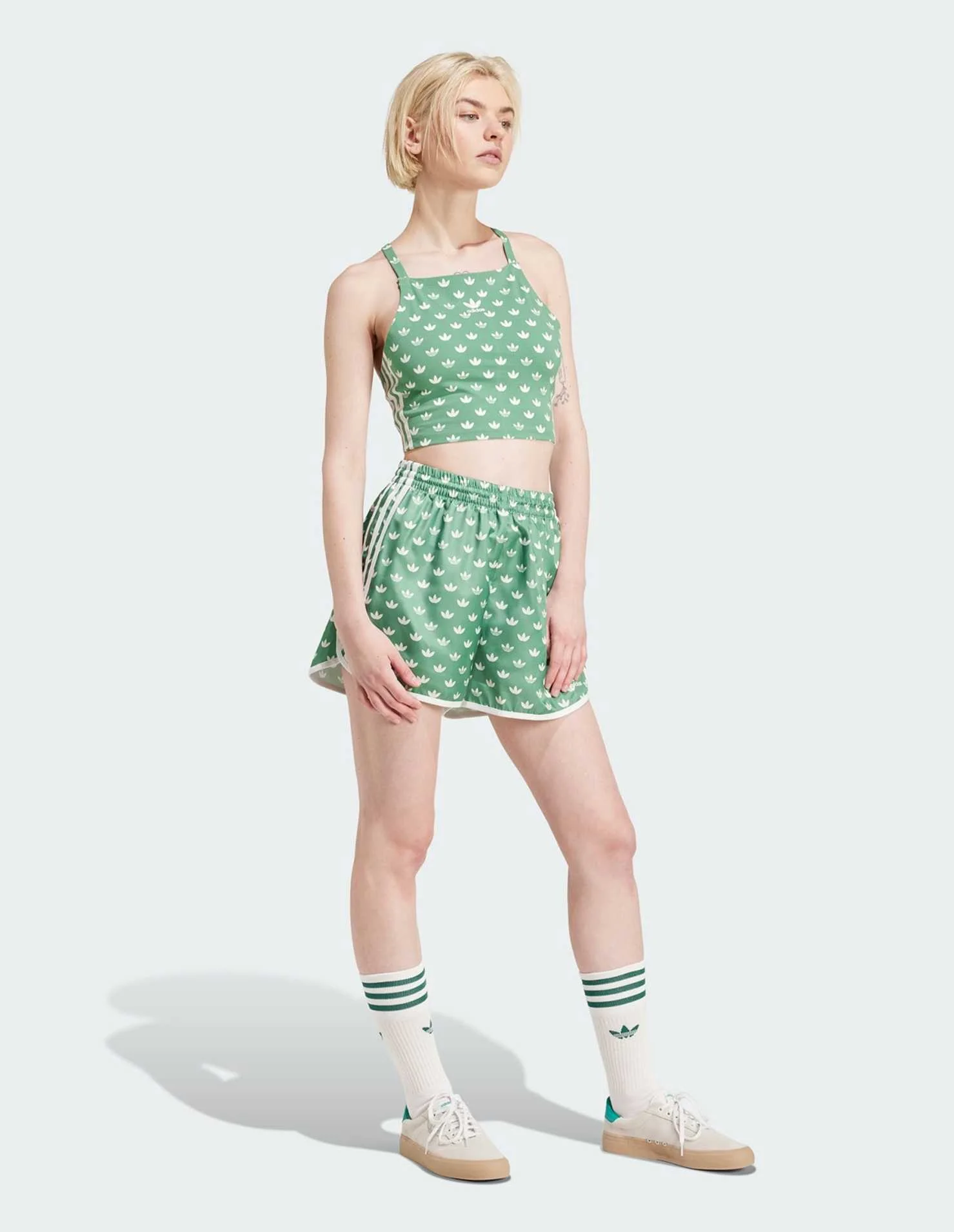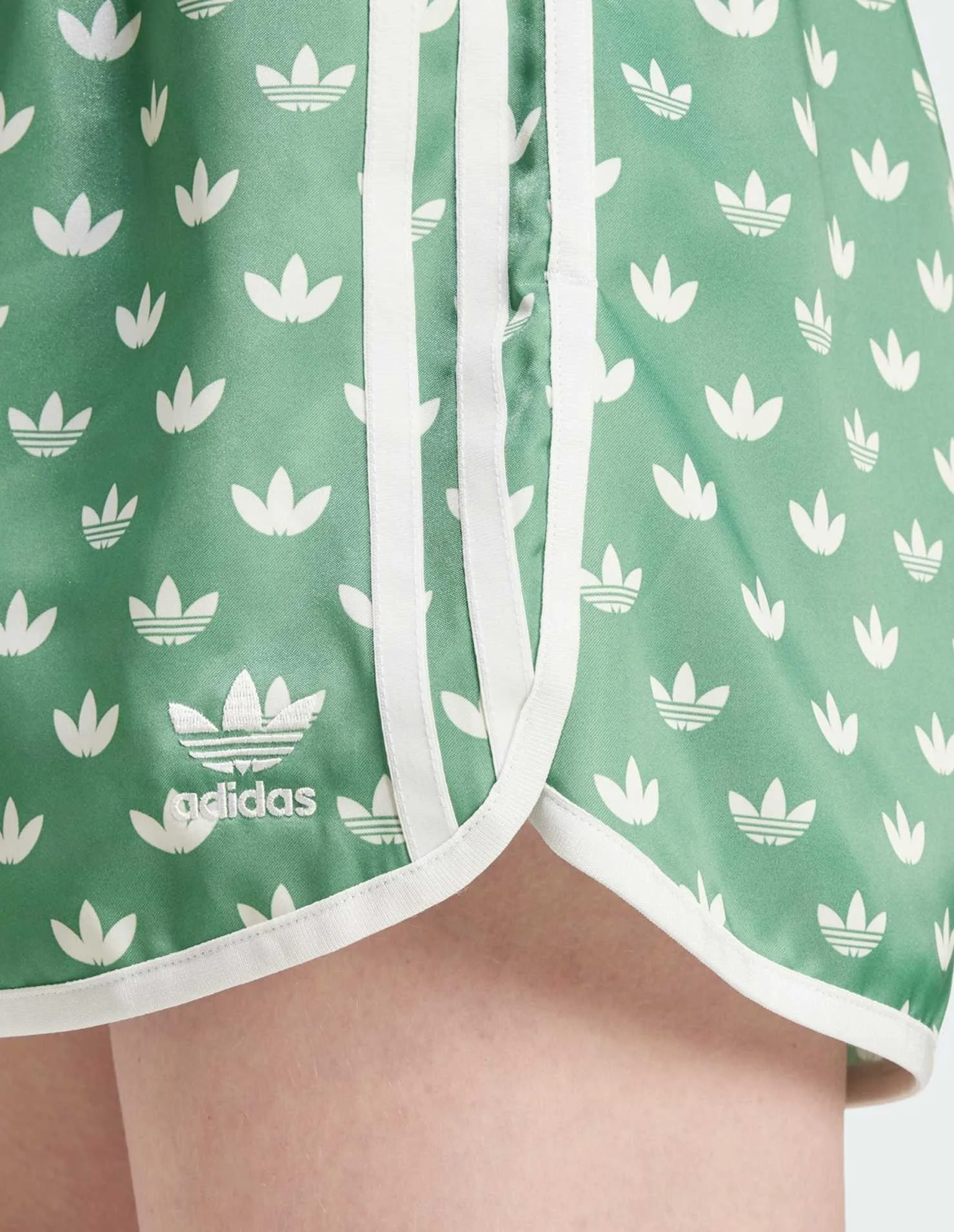 adidas ატლასის შორტი - გვერდებზე ბრენდული 3 ზოლი და მთელ ზედაპირზე დატანილი Trefoil მონოგრამა კლასიკურ სტილს თავიდან აცოცხლებს. იდეალურად ერწყმის საყვარელ მაისურს, ტოპს ან ჰუდის.