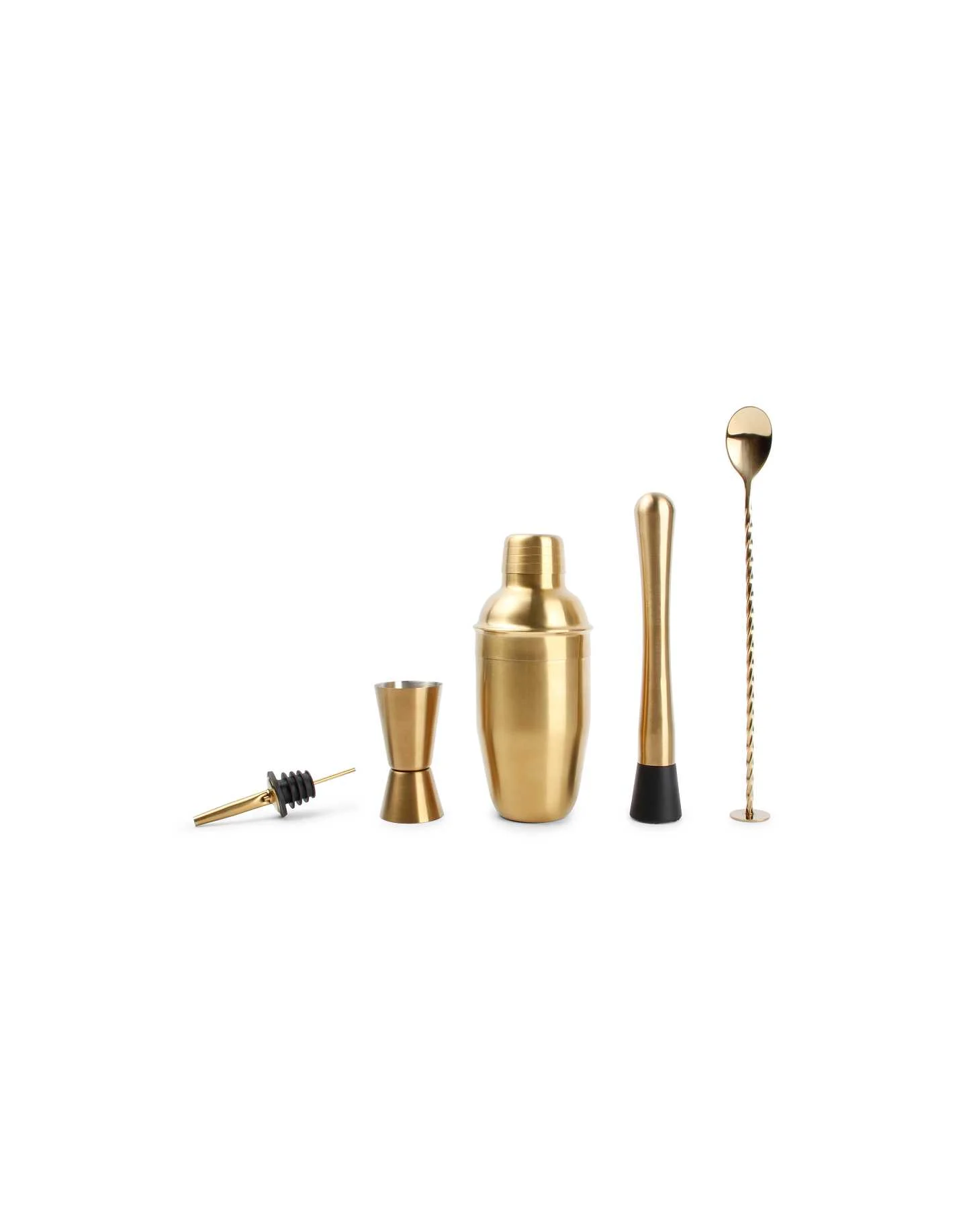 გააღვიძეთ თქვენი შინაგანი მიქსოლოგი ჩვენი ელეგანტური Bar სერიის 7-ნაწილიანი ოქროსფერი კოქტეილის ნაკრებით. შექმნილი მათთვის, ვინც აფასებს სტილს, ეს უჟანგავი ფოლადის კომპლექტი უზრუნველყოფს, რომ ყოველი საოჯახო შეკრება გადაიქცეს კრეატიულობისა და დახვეწილი გემოვნების დღესასწაულად.