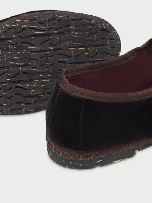 - "ზედაპირი: 100% ბამბა ხავერდოვანი; სარჩული: 100% ეკოლოგიური ბამბა; ძირი: გადამუშავებული რეზინი."