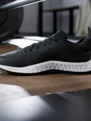 სპორტული ფეხსაცმელი სავარჯიშო დარბაზისთვის, დამზადებული ნაწილობრივ გადამუშავებული მასალებით.