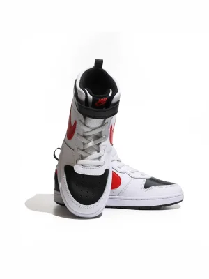 Nike High-Top Sneakers – კლასიკური, მაღალყელიანი დიზაინი დამზადებულია გამძლე ტყავისგან, რაც მოდელს დახვეწილ იერსა და ხარისხის შეგრძნებას ანიჭებს. თასმის ნაცვლად გამოყენებული Velcro სამაგრი აადვილებს ფეხსაცმლის ჩაცმასა და გახდას.