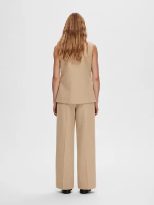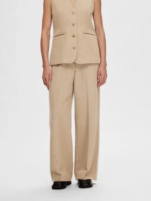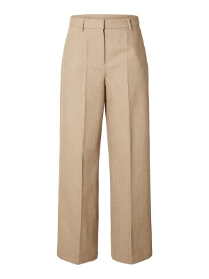 Selected Wide Leg Trousers – მაღალ წელიანი ფართო შარვალი, რომელიც ელეგანტურ იერსა და დახვეწილ სილუეტს ქმნის. გვერდითა დეკორატიული ჯიბეები და ქამრის მარყუჟები ამატებს სტილსა და სტრუქტურას, რაც მოდელს სრულყოფილს ხდის ოფიციალური ან ყოველდღიური ჩაცმულობისთვის.
