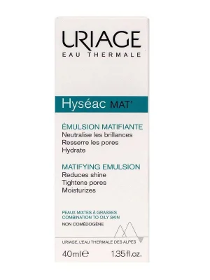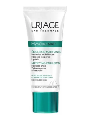Uriage Hyseac Mat – სახის მოვლის ემულსია კომბინირებული და ცხიმიანი კანისთვის, რომელიც მატირებს, ატენიანებს და ამცირებს ფორებს. იდეალურია მაკიაჟის ბაზად, უზრუნველყოფს ხანგრძლივ კომფორტს და ტოვებს მატირებად, ხავერდოვან ეფექტს.