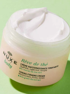 Nuxe Body Rêve de Thé Toning Firming Cream – სხეულის კრემი, რომელიც ტონუსს ანიჭებს და ატენიანებს კანს. უზრუნველყოფს სიგრილის სასიამოვნო ეფექტს და ინტენსიურ კომფორტს.