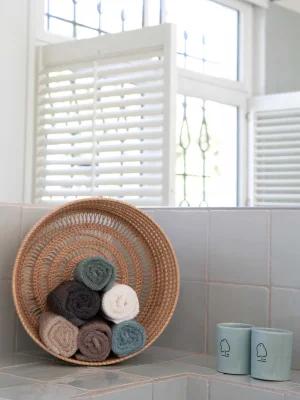 Tiseco Guest Towel EDEN – 30x50 cm, Star White, Set of 2 – ორი მაღალი ხარისხის პირსახოცის ნაკრები EDEN კოლექციიდან. დამზადებულია 100% ორგანული ბამბისგან, რომელიც ამცირებს წყლის მოხმარებასა და CO2-ის გამონაბოლქვს და არ საჭიროებს ქიმიკატების გამოყენებას. ორგანული ბამბა უფრო რბილი, მდგრადი და გამძლეა, ვიდრე ჩვეულებრივი. 500 გ/მ² სიმკვრივე უზრუნველყოფს მაღალი შთანთქმის უნარსა და განსაკუთრებულ კომფორტს. მოსახერხებელი მარყუჟი მარტივ შენახვას უწყობს ხელს.