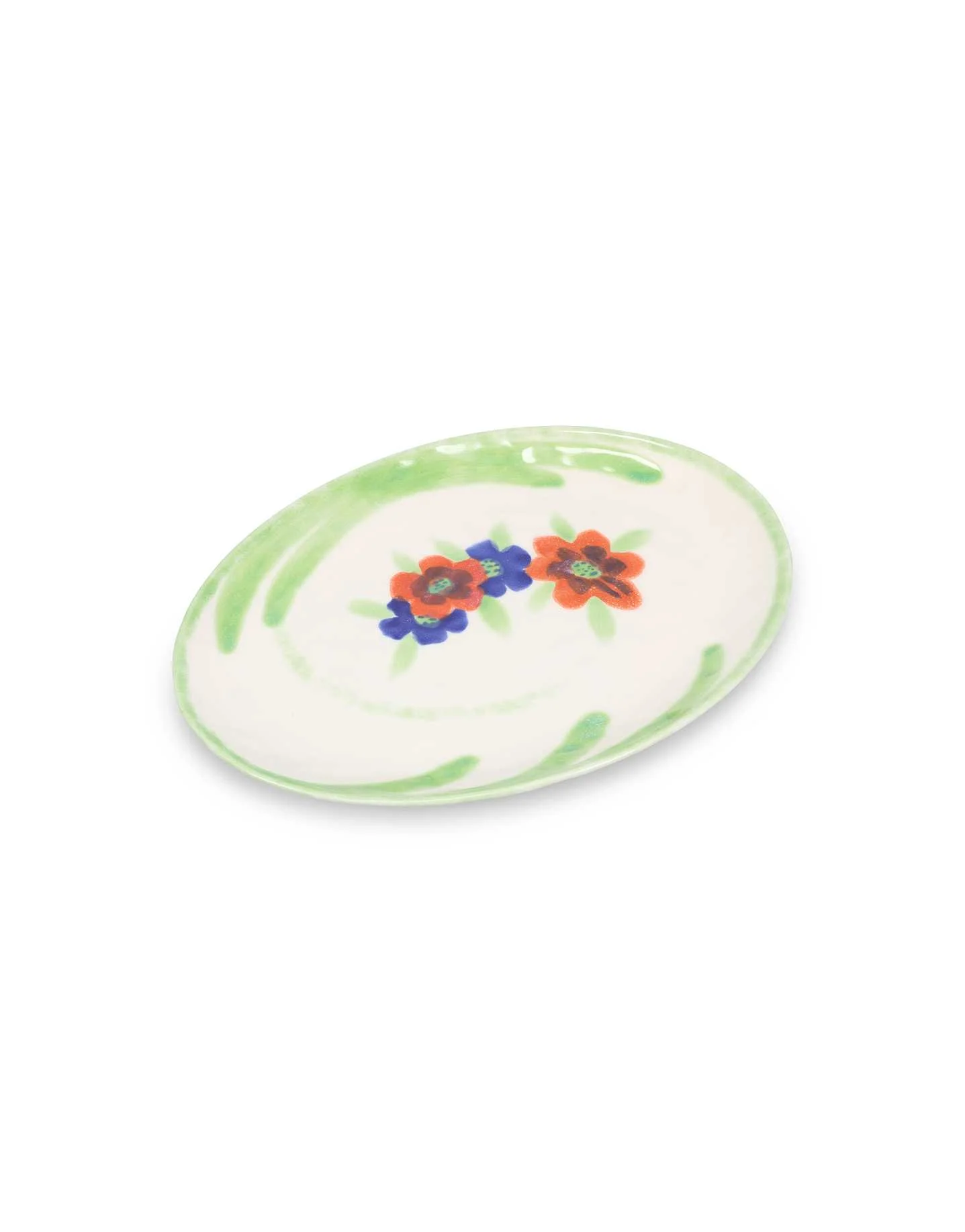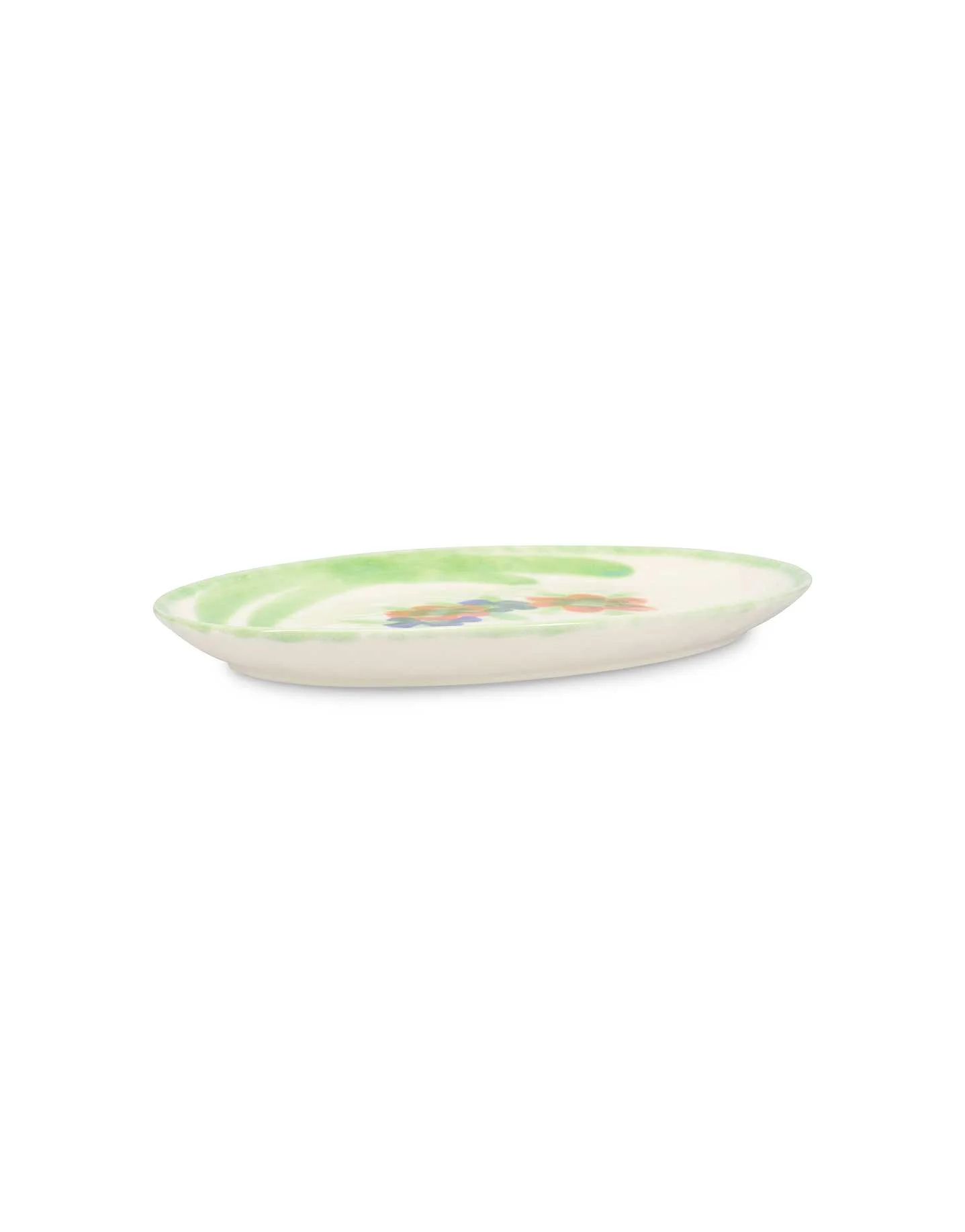 Salt & Pepper Serving Dish Fleur 36,5x25,5 cm – ოვალური კერამიკის სერვირების თეფში ხელით მოხატული ყვავილოვანი დიზაინით, რომელიც სუფრას სამხრეთ საფრანგეთის ატმოსფეროს მატებს. შესანიშნავია როგორც ყოველდღიური კერძებისთვის, ისე ფერადი და მხიარული წვეულებებისთვის.