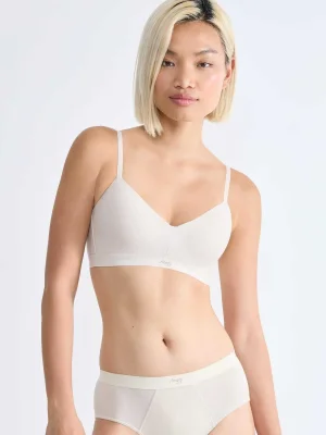 EVER Ease ბიუსტჰალტერი დამატებითი ბალიშებით - დამზადებულია რბილი და სუნთქვადი ორგანული ბამბისგან, სპეციალური ტექნოლოგიით, რომელიც იცავს სითბოსგან ზაფხულში და ინარჩუნებს სითბოს სიცივეში.