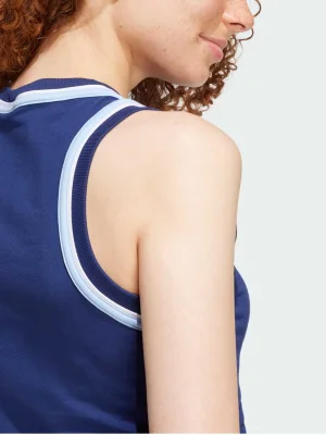 adidas-ის ტოპი თბილი ამინდისთვის არის შექმნილი. ფერთა კონტრასტული დეტალები კლასიკურ სპორტულ სტილს ახალ ელფერს სძენს. დამზადებულია რბილი ბამბის ჯერსის ქსოვილისგან, ხოლო დეკოლტესა და ამოჭრილებში განსხვავებული ფერის გაფორმება მოულოდნელ და მოდურ იერს მატებს. იდეალურად ერწყმის მაღალწელიან შორტებს ან საყვარელ ჯინსებს, რათა მარტივად შეიქმნა კომფორტული ლუქი.