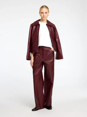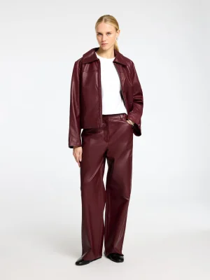 Selected Leather Trousers – თანამედროვე და ელეგანტური შარვალი, რომელიც კომფორტულობასა და სტილს იდეალურად აერთიანებს. საშუალო წელის დიზაინი, ქამრის მარყუჟები და წინა ჯიბეები ქმნის გამართულ სილუეტს, ხოლო გადამუშავებული პოლიესტერის შიდა საფარი უზრუნველყოფს დამატებით კომფორტს ტარებისას.