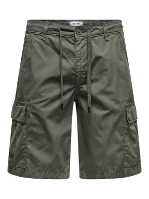 Only & Sons Cargo Shorts – პრაქტიკული შორტები ზაფხულის თბილი დღეებისთვის. მოდელს აქვს გვერდითი და კარგოს ჯიბეები, თასმით რეგულირებადი წელი და ქამრის მარყუჟები, რაც კომფორტთან ერთად ფუნქციურ იერს ქმნის. მუხლამდე სიგრძე და რეგულარული ჭრა უზრუნველყოფს თავისუფალ მოძრაობას ყოველდღიური ტარებისას.